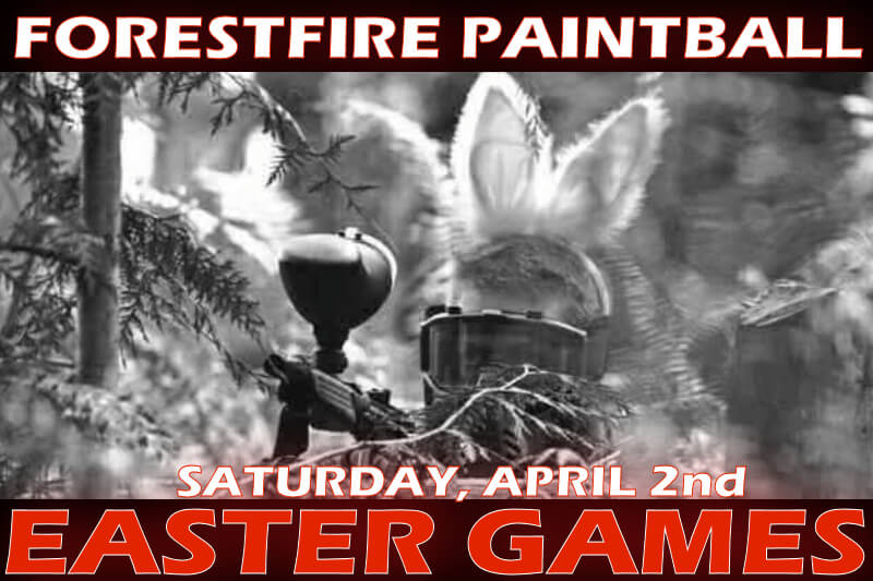 What: Respawns, Easter Bunnies, Candy, and more! Come check out our Easter themed games! Where: ForestFire Paintball, 17022 Burn Road, Arlington, WA 98223 When: April 2nd, from 11am-3pm